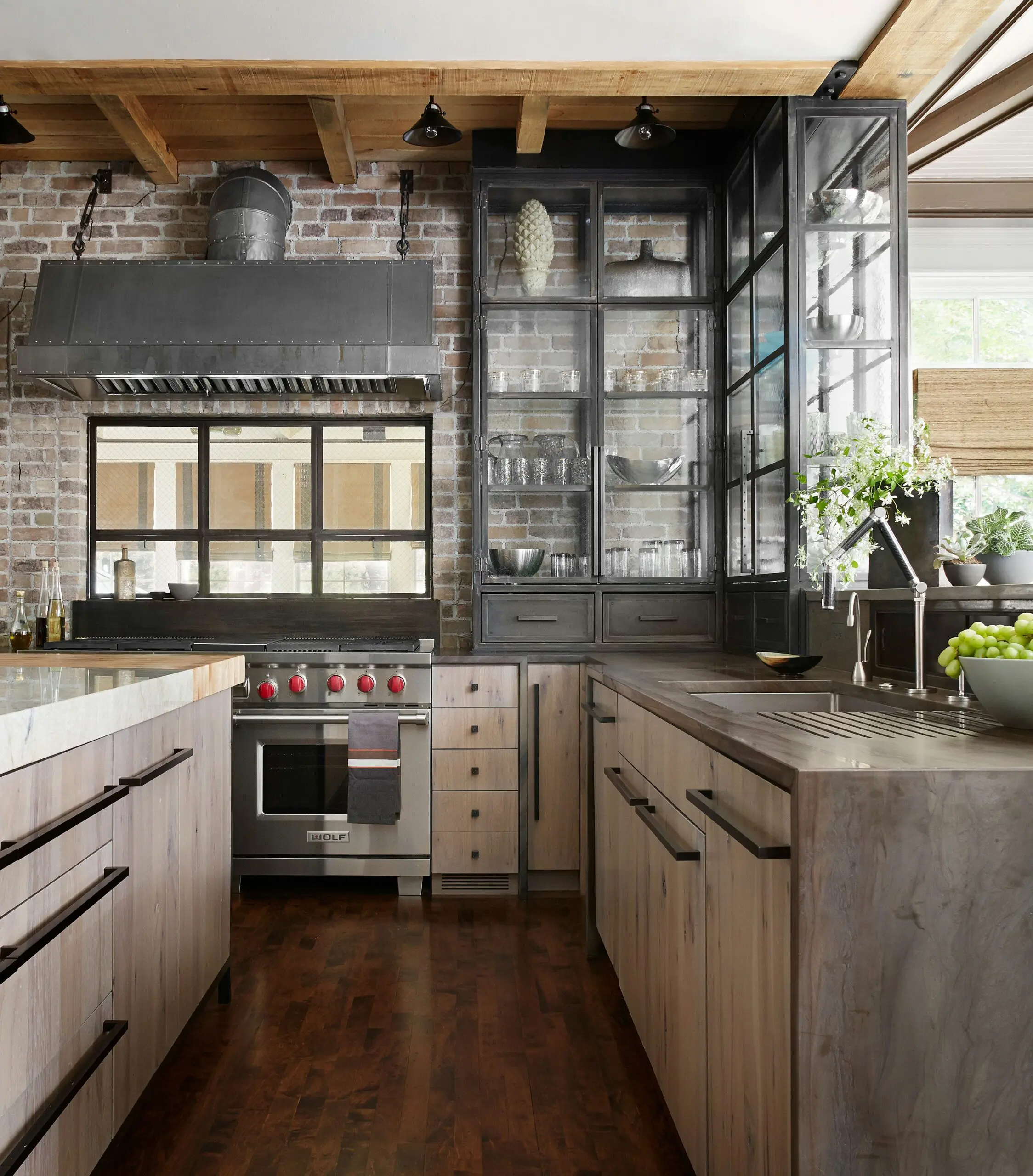 Today’s industrial kitchens are also evolving to prioritize sustainability and adaptability. Repurposed materials, such as salvaged wood or vintage factory fixtures, remain a key feature, but now pair with eco-friendly appliances and LED lighting to reduce environmental impact. Large windows, glass partitions, and skylights are increasingly being used to bring in natural light and prevent the space from feeling too heavy or dark.